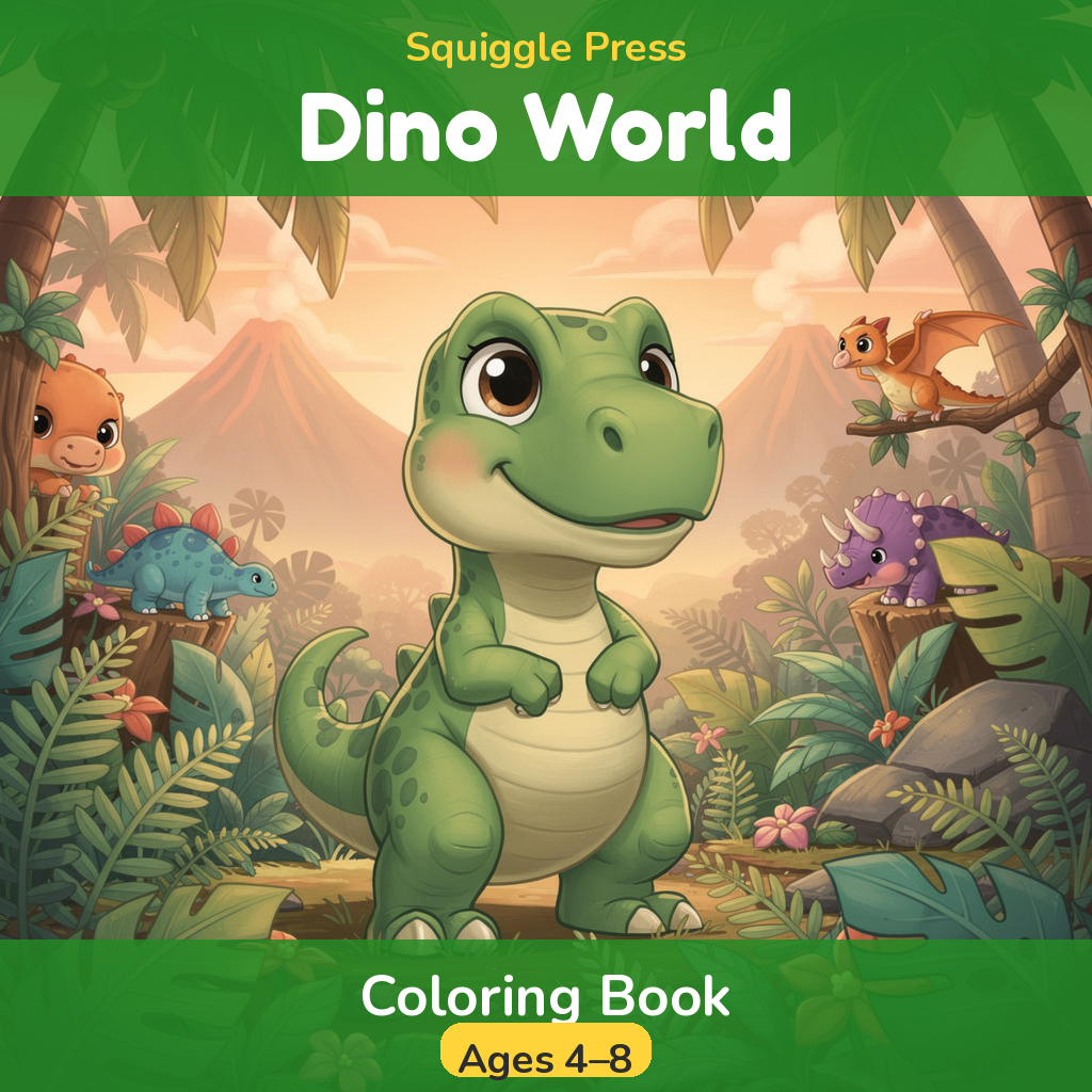 🦖 30 pages of dino-mite coloring fun! Instant PDF download for kids ages 4–8. Features T-Rex, Triceratops, and more!